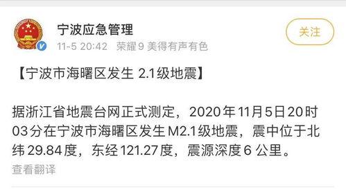 最近宁波的小伙伴们可是炸开了锅呢!原因无他,一场地震的最新爆料让整个城市都紧张了起来。这不,我就迫不及待地来给你揭秘这场地震的最新动态,让你一探究竟!